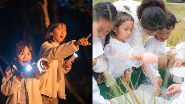 BUB RESORTが提案する新しい家族旅行のカタチの一つが、親と子どもがそれぞれの時間を満喫できる「キッズタイム」です。夕食後、食事が終わった子どもたちはBUBクルーと一緒に「子どもだけの遊びの時間」へ出発。親は落ち着いた環境で食事や会話を楽しみ、子どもたちはその日出会った友達と協力しながら思いきり遊び、新たな発見や成長の機会を得ます。