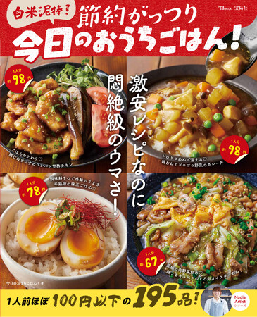 Nadia株式会社(東京都港区/代表取締役社長 葛城嘉紀)にて運営している料理メディア・Nadia(ナディア)(URL:https://oceans-nadia.com/)で活躍するNadia Artistの今日のおうちごはん!さんによる待望の3冊目のレシピ本『TJMOOK 白米泥棒!節約がっつり 今日のおうちごはん!』(宝島社、1,210円(税込))が4月15日(火)に発売となりました。