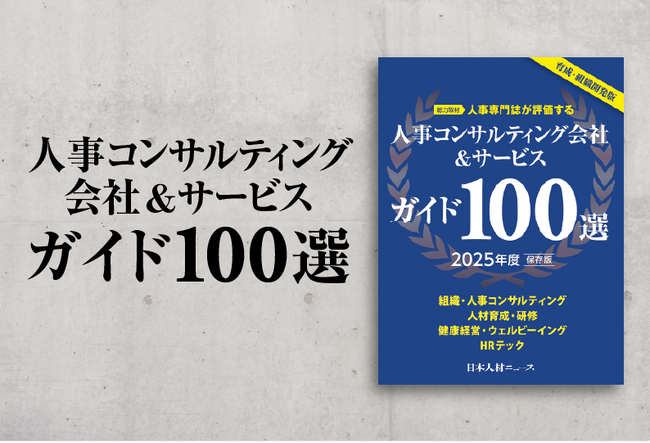 人事専門誌「日本人材ニュース」を発行する株式会社日本人材ニュース社(東京都千代田区、代表取締役:吉越利成)は、企業の人材育成・組織開発を十分に支援できるコンサルティング会社とサービスを紹介する「人事コンサルティング会社&サービスガイド100選 2025年度版」を発行しました。