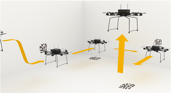 ドローンがARマーカーを読み取りながら自律飛行するイメージ図