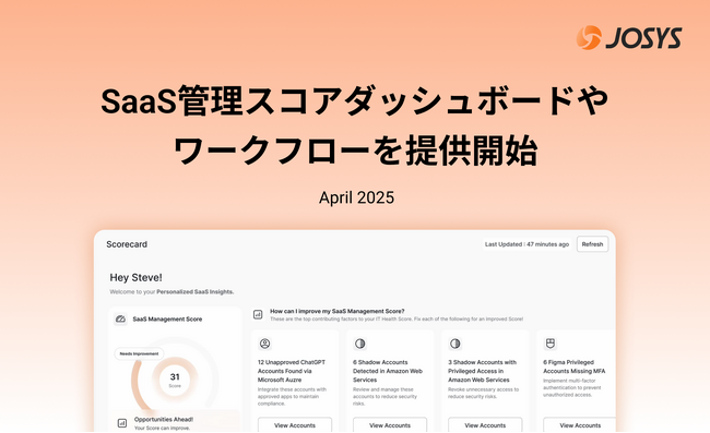 Josys、SaaS管理スコアダッシュボード、アクセスマネジメントワークフローをリリース