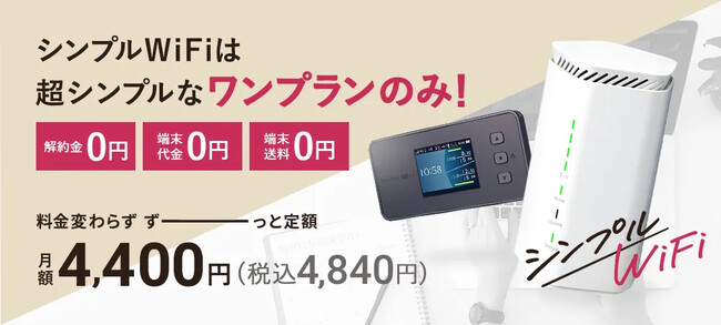 シンプルWiFiなら、端末代金が0円!解約金0円!送料も0円!