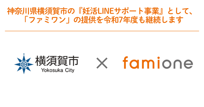 「子どもを願うすべての人によりそい 幸せな人生を歩める社会をつくる」をビジョンに掲げ、法人の従業員向け福利厚生や自治体の住民向け支援を行うヘルスケアサポートサービス「ファミワン」 https://famione.com/benefit/などを展開する株式会社ファミワン(本社:東京都渋谷区、代表取締役:石川勇介)は、神奈川県横須賀市(市長:上地克明、以下横須賀市)からの委託を受け、「妊活LINEサポート事業」による、妊活に取り組む市民のサポートと不妊・不育専門相談センターの推進の連携について、令和7年度のサービスの提供継続が決定いたしました。