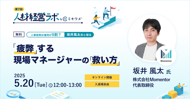 ミキワメが5/20(火)にオンラインイベント「人材経営ラボ(坂井 風太氏ご登壇)」を開催