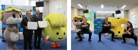 写真左から:須崎市のマスコットキャラクター「しんじょう君」、須崎市長 楠瀬 耕作、