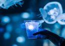 毎年「夜のすいぞくかん」開催日限定で販売している「光る★クラゲソーダ」が今年も登場します。ソーダは、見た目も爽やかなブルーハワイ味をご用意。ソーダの中には、クラゲ形の光るキューブを浮かべており、館内での記念撮影にもピッタリです。光るキューブは、お土産としてお持ち帰りいただけます。