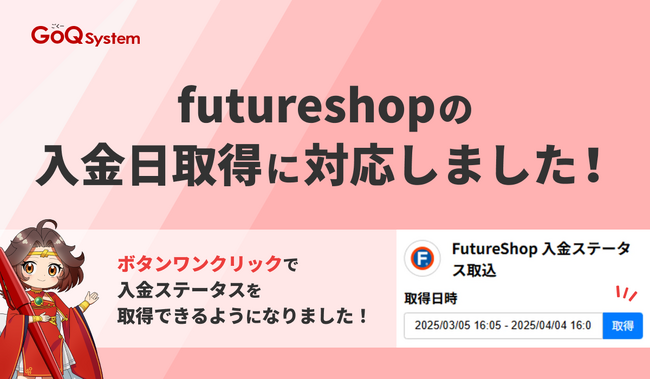 株式会社GoQSystemが開発、提供する通販(EC)管理システム『GoQSystem』は、futureshopの入金日取得機能をリリースいたしました。