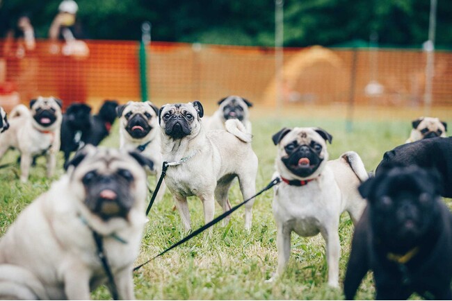 パグだらけのドッグラン犬種別オフ会ならではの「パグだらけのドッグラン」