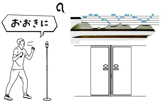 「key voice~開けゴマの世界~」は、来場者が発話した大阪弁のイントネーションを音声認識で判定し、設定された評価基準を満たした正しいイントネーションで発話すると、自動ドアが開く仕組みになっています。