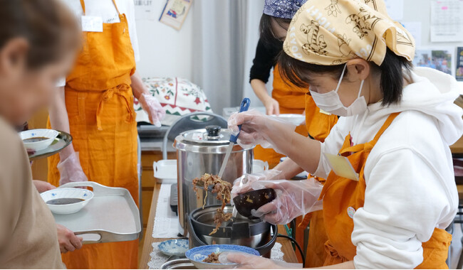 ボランティアスタッフによる運搬・配膳