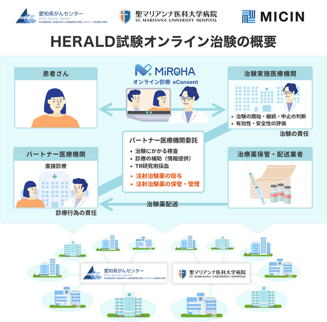 愛知県がんセンター、聖マリアンナ医科大学病院、MICIN、がん領域で注射治験薬における本邦初 完全リモートのオンライン治験を実装