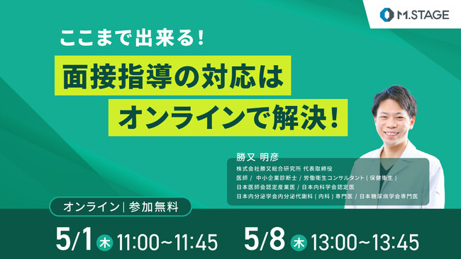 株式会社エムステージ(本社:東京都品川区、代表取締役:杉田雄二)産業保健事業部は、5/1(木) 11時かからと、5/8(木) 13時より、メンタルヘルス不調予防対策としても活用可能なオンライン面接指導サービスの活用事例を紹介するウェビナーを開催いたします。