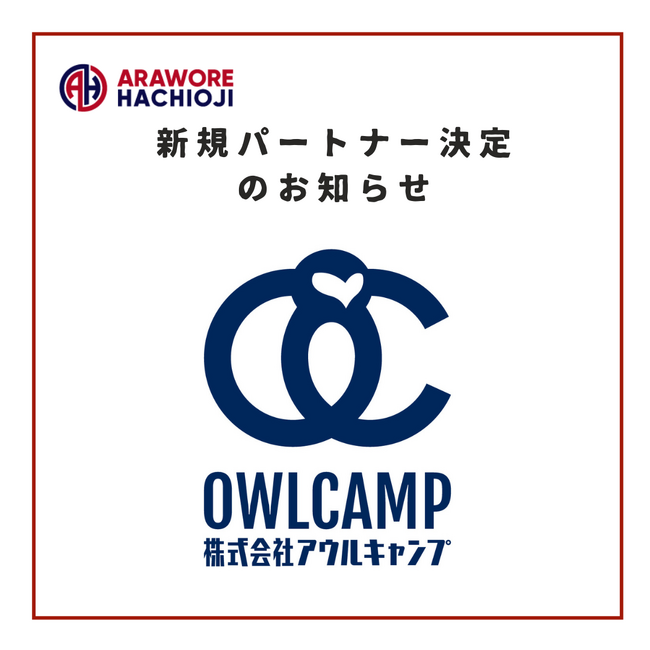この度、アローレ八王子のオフィシャルパートナーとして、「株式会社アウルキャンプ」様と契約を締結しましたので、お知らせいたします。