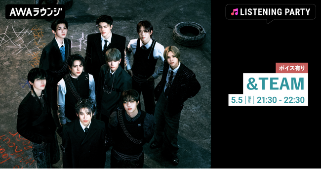AWA株式会社(本社:東京都港区、代表取締役CEO:冨樫晃己)が運営する、サブスクリプション型(定額制)音楽ストリーミングサービス「AWA(アワ)」は、2025年5月5日(月・祝) 21:30~22:30の1時間に渡り、無料で誰でも参加できるオンライン空間「AWAラウンジ」で、&TEAM特集のリスニングイベントを開催いたします。