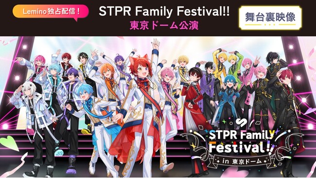 株式会社STPR (本社:東京都渋谷区 代表:柏原 真人、以下STPR)は、「すとぷり」「Knight A - 騎士A -」「AMPTAKxCOLORS」「めておら - Meteorites -」「すにすて - SneakerStep Prod.STPR MUSIC」など、所属のクリエイターが東京ドーム・ベルーナドームに集結し5日間開催した『STPR Family Festival!!』の舞台裏映像が、株式会社NTTドコモ(本社:東京都千代田区 代表:前田 義晃、以下ドコモ)が提供する映像配信サービス「Lemino」にて独占配信されることをお知らせいたします。