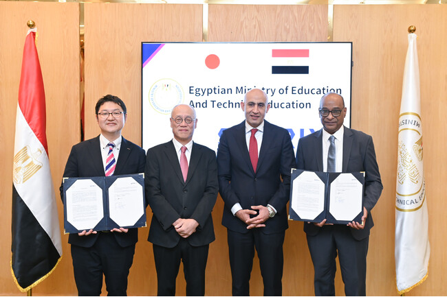 この締結式には、ムハンマド・アブデル・ラティーフ教育・技術教育大臣および岩井文男 在エジプト日本国特命全権大使を立会人としてお迎えし、両者は協力体制をより一層強化していくことをすることを確認しました。