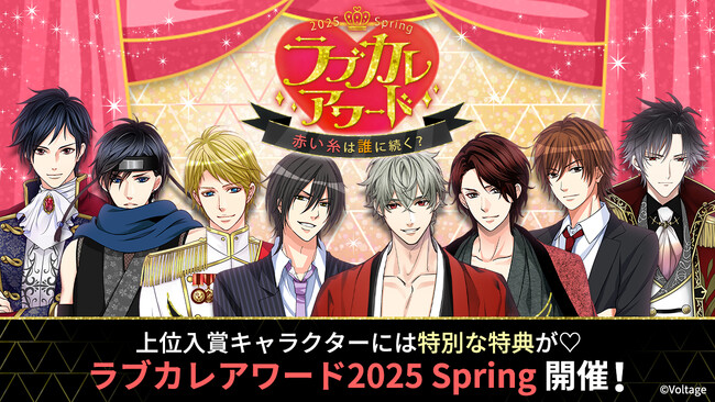 株式会社ボルテージ(本社:東京都渋谷区 代表取締役:津谷 祐司)は、当社が提供中のボル恋タイトルのストーリーアバター型(ソーシャル版) アプリに登場するキャラクターの人気投票イベント「ラブカレアワード2025 Spring ~赤い糸は誰に続く?~」(以下、ラブカレアワード)の投票受付を4月26日(土)より開始することをお知らせいたします。
