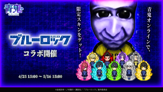 青鬼オンラインに、TVアニメ『ブルーロック』のキャラクターが青鬼オンラインのコラボスキンとして登場!
