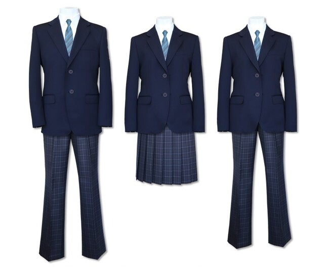 今回決定したデザインは、深みのあるダークネイビーのブレザーに、同系色のネイビーを合わせ、引き締まった印象となっております。