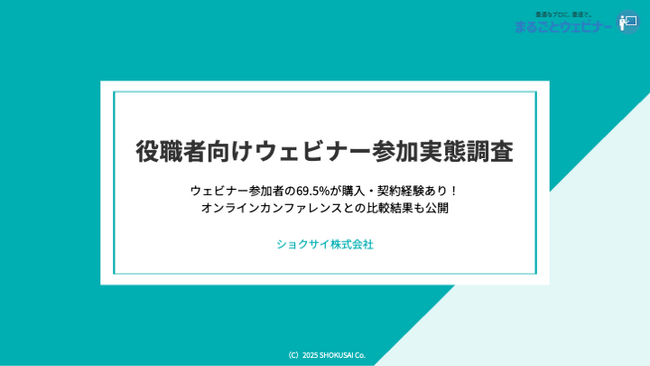ウェビナーを活用したマーケティング支援事業、「まるごとウェビナー」を展開するショクサイ株式会社(代表取締役:辻本 大樹)は、過去1年間に業務の一環としてウェビナーに参加した経験のある役職者以上のビジネスパーソン200名を対象に、「ウェビナー参加実態調査」を実施しました。 本調査により、ウェビナーが依然として高いビジネス効果を持つこと、そして多忙なビジネスパーソンにとって効率的な情報収集手段として支持されている実態が明らかになりました。