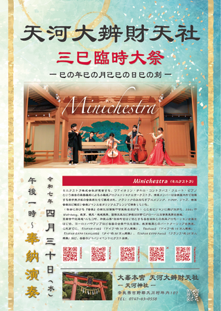 ミニケストラ株式会社(本社:東京都港区、代表取締役社長:小田原 大)が運営する小編成プロフェッショナル・オーケストラチーム『Minichestra(ミニケストラ)』は、2025年4月30日(水)、奈良県吉野郡天川村に鎮座する天河大辨財天社の神楽殿にて、奉納演奏を行います。