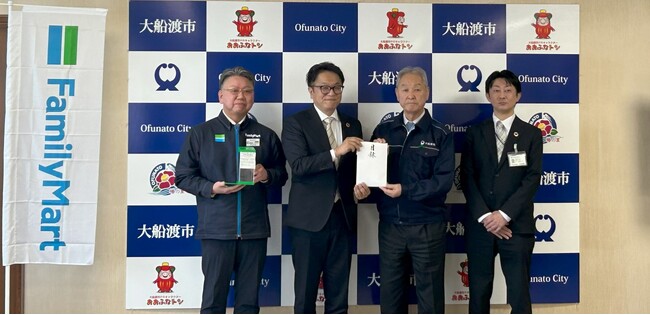 株式会社ファミリーマート(本社:東京都港区、代表取締役社長:細見研介)は、2025年3月11日(火)から3月30日(日)までの期間、東北地方(青森県、岩手県、宮城県、秋田県、山形県、福島県)の約1,100店舗で実施した、大船渡市林野火災被害に伴う店頭支援金を岩手県大船渡市へ寄託いたしました。