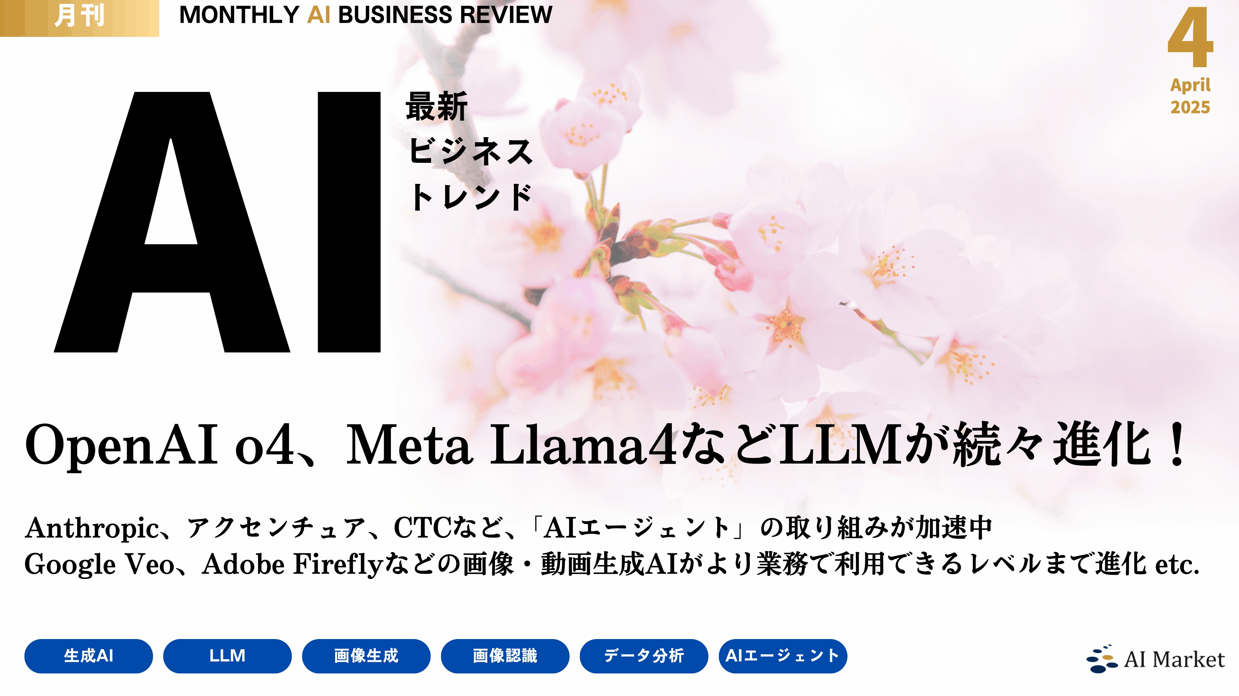Llama 4、OpenAI o3、アクセンチュア AIエージェントビルダーなど最新のAIビジネストレンドがわかる『MONTHLY AI BUSINESS REVIEW 2025年4月号』を公開!