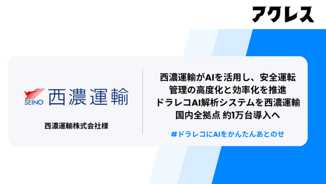 ~ドラレコAI解析システムを西濃運輸 国内全拠点 約1万台導入へ~