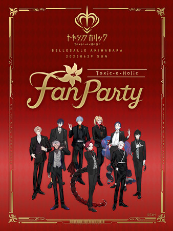 [画像2: https://prcdn.freetls.fastly.net/release_image/101562/459/101562-459-5f781e6650ea88b0390e8ef4caced478-1280x720.png?width=536&quality=85%2C75&format=jpeg&auto=webp&fit=bounds&bg-color=fff ]『Toxic-a-Holic』初のリアルイベント「『Toxic-a-Holic』Fan Party」のキービジュアルは、スーツ姿で決めたメンバー全員が登場します。イラストには日頃から応援してくださるファンの皆さまへの感謝の気持ちが込められています。