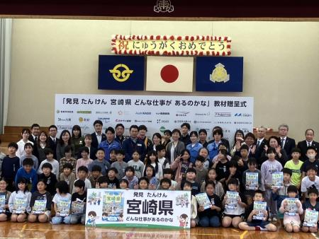 小・中学校のキャリア教育冊子「発見たんけん宮崎県」贈呈式に参加しました