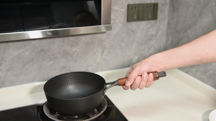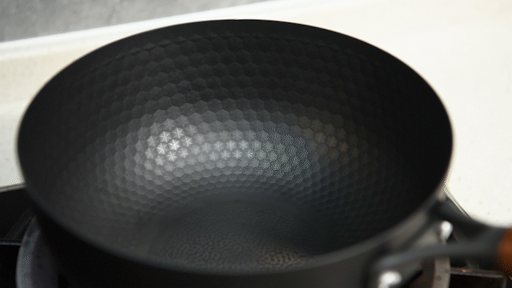 窒化処理されたSWISS MILITARY 中華鍋は硬度が大幅に向上されたため、硬い野菜や貝類も安心して炒められます。