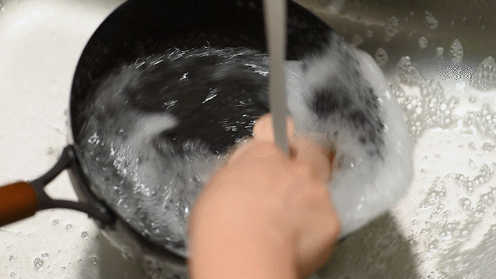 [画像20: https://prtimes.jp/api/file.php?c_id=63382&t=animationGifImage&f=bbf6a475e359e1b865a30732b616a22c.gif ]使用後は必要に応じて、水またはぬるま湯とタワシで洗います。ゴシゴシしても大丈夫。洗剤を使っても大丈夫ですが、基本的に洗剤はいりません。もしもこびりついた汚れがある場合は、水を張ってしばらく加熱してから洗うと落ちやすいです。ヘラなどでこそげとってもOK。最後にさっと火にかけて乾かすだけ。「サビにくく」、「焦げつきにくい」末永く共にできる相棒です。