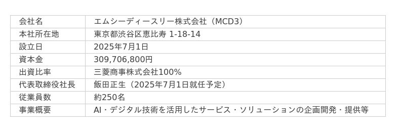 株式会社MCデータプラス(代表取締役社長 飯田正生 以下、MCDP)、株式会社インダストリー・ワン(代表取締役社長 遠藤翼 以下、IO)、エムシーデジタル株式会社(代表取締役社長 河内伸学 以下、MCD)の3社は、2025年7月1日付けで合併し、「エムシーディースリー株式会社(以下、MCD3)」を設立することを決定しましたのでお知らせいたします。