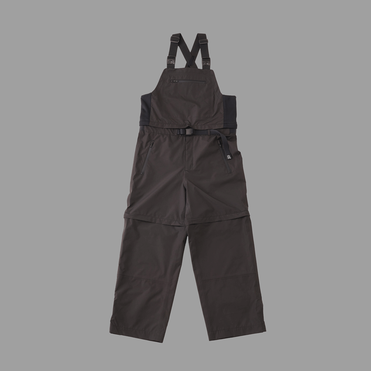 ビブパンツ(オーバーオール)・ロングパンツ・ショートパンツの3Wayで使用可能なレインパンツ。それぞれの接合部には「止水ファスナー」を使用しており、つなぎ目からの浸水を防ぎます。