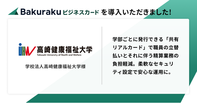 この度、群馬県高崎市に位置する私立大学、高崎健康福祉大学に「バクラクビジネスカード」が導入されました。