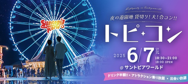 「夜の遊園地貸切り大合コン」提携5団体目!1,500名が出会う「トピコン」6月7日(土)開催