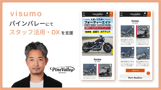 ハーレーダビッドソンのカスタム事業やパーツのEC販売等を行う「パインバレー」、大きな強みの1つは「人」。お客様のご要望に応じて「オーダーメイド」で仕上げていく提案力・国家整備士による正確な技術力など、豊富な知識や高度な専門スキルを持つスタッフの存在です。今回、スタッフ接客をweb活用できる機能「visumo snap」の導入により、豊富なカスタムオーダーメイドの施工事例とともにスタッフの知識・ノウハウをwebサイトへ掲載。さらに導入にあたり、サイト上のコミュニケーション設計も改善し、欲しい情報に迷わずアクセスいただけるようなUXを実現。これにより、EC接客や店舗接客などで、スタッフの持つ強みを最大限に活用できるようになりました。