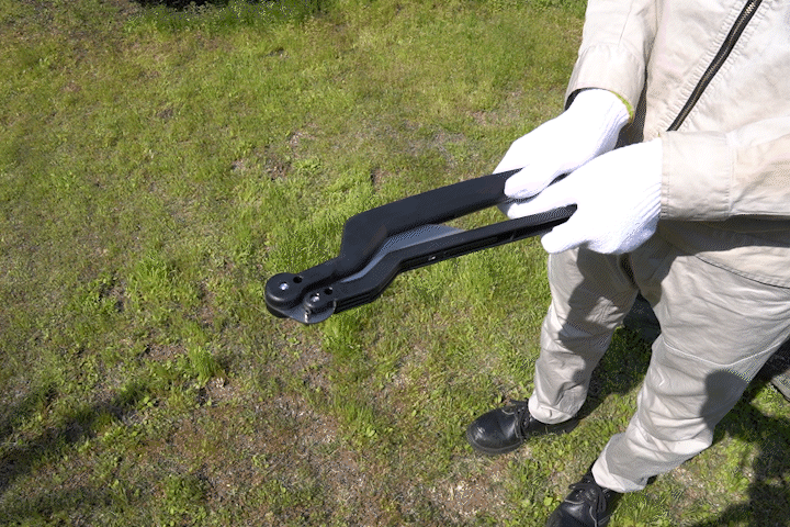 柄をクルっと回すだけで刃の展開と収納が瞬時に行える構造を採用しています。開閉にかかる時間はわずか1秒。刃に直接手を触れる必要がないため、展開・収納時のケガのリスクを大幅に軽減しています。 使用後は刃が本体内部に完全に収納される設計となっており、持ち運びの際も安心で、道具箱やリュックに入れても他の工具や荷物を傷つける心配がありません。[画像3: https://prtimes.jp/api/file.php?c_id=145046&t=animationGifImage&f=706a2f1e50cc34b40d349fc3b7e1f660.gif ]