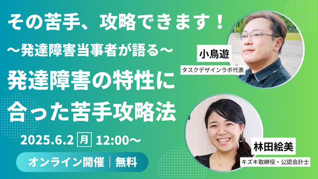 【6/2 12:00~】「発達障害からくる苦手、攻略できます」小鳥遊×林田絵美 2人の発達障害当事者が語る、自分の発達障害の特性に合った苦手攻略法【出版記念トークイベント/参加者限定特典あり】