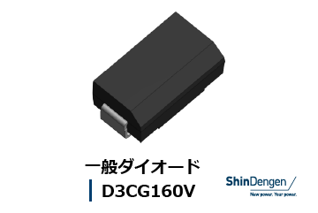 CGパッケージを採用した第一弾製品として、民生機器向けダイオード「D3CG160V」を発売します。大型チップを搭載することで耐圧1600V、IFSM耐量150Aを確保し高サージにも対応可能です。