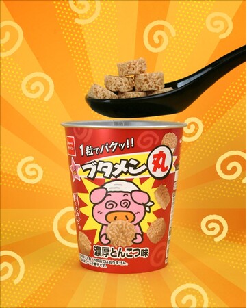 お湯も、待つ時間も不要で、一粒で「ブタメン」の美味しさを手軽に堪能できる「ブタメン丸」は “ながら食べ”にも最適なカップ容器入り。「ブタメン」ファンと「ラーメン丸」ファンの双方に新鮮さを提供し、ブランドの活性化を図ります。