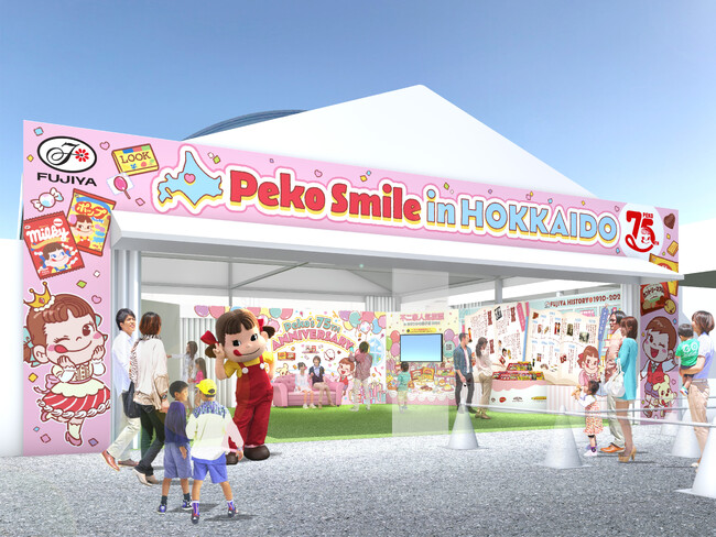 不二家は、お菓子メーカーなど7社による展示スペース「スイーツファミリーランド北海道」に出展いたします。「いつでも」「どこでも」そして「みんなに」ペコちゃんの笑顔を届けたいという想いから、「Peko Smile in HOKKAIDO」をテーマにブースを展開いたします。