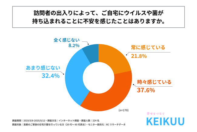 高齢のご家族の在宅介護を行っている方の約6割が「訪問者によるウイルスや菌の持ち込み」に不安を感じている!京空株式会社が「在宅介護における感染症対策の実態」に関する調査を実施!