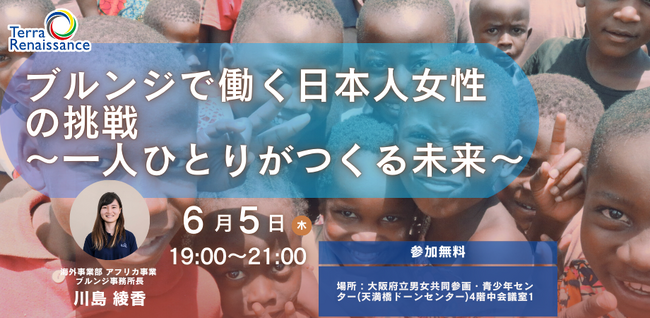 認定NPO法人テラ・ルネッサンス(理事長:吉田真衣、所在地:京都府京都市)は、アフリカ・ブルンジで活動する駐在員、川島綾香によるトークイベント「ブルンジで働く日本人女性の挑戦 ~一人ひとりがつくる未来~」を、2025年6月5日(木)に大阪にて開催します。本イベントでは、紛争の被害を受けた人々の自立支援を行う国際協力の「リアル」と、そこで生まれる「葛藤」を、現場の最前線で活動する川島自身の言葉でご紹介します。