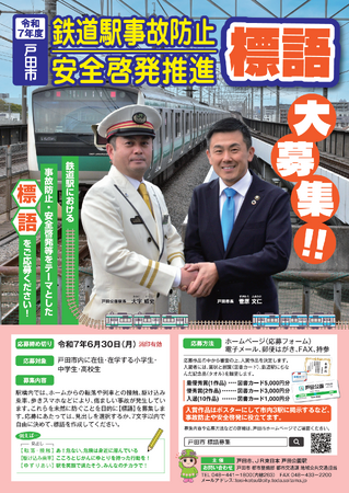 埼玉県戸田市では、市内在住・在学の小学生・中学生・高校生を対象に、東日本旅客鉄道株式会社 戸田公園駅と共同で、鉄道駅における事故防止や安全啓発の推進を目的とした標語を募集します。