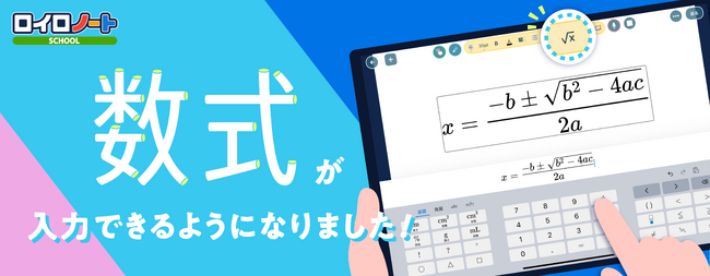 株式会社LoiLoは、授業支援クラウド「ロイロノート・スクール」に数式入力機能を追加しました。アプリ内のキーボードを使うことで、数式を簡単に入力できます。小中学校で扱う基礎的なものから高校で扱う発展的なものまで、様々な数式に対応しています。