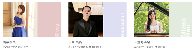 カフェトークでオンラインピアノレッスンを提供する3名の著名ピアニストが審査員を務めます。