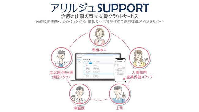 アリルジュ株式会社 (本社:東京都港区、代表取締役:森下真行、以下「アリルジュ」)は、このたび治療と仕事の両立支援クラウドサービス「アリルジュSUPPORT」の販売を開始したことをお知らせします。