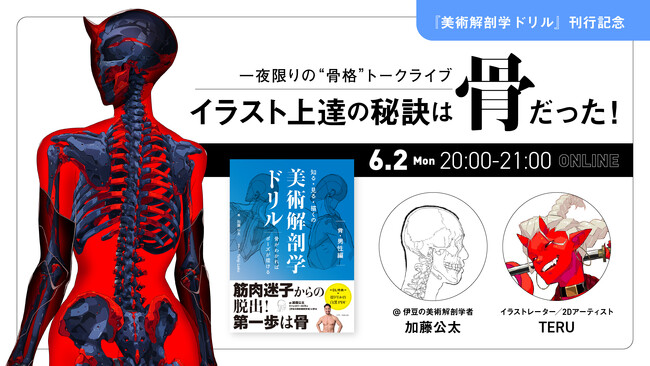 イラスト上達の秘訣を語る「骨格トークライブ」6月2日開催!美術解剖学者・加藤公太&人気イラストレーターTERUが対談