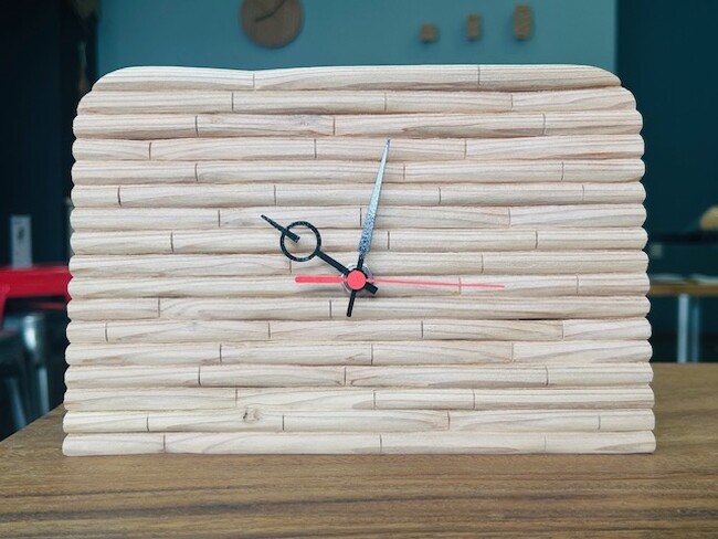 伝統の彫刻技術を活かし、木の風合いと彫刻の美が調和した置き時計「竹」